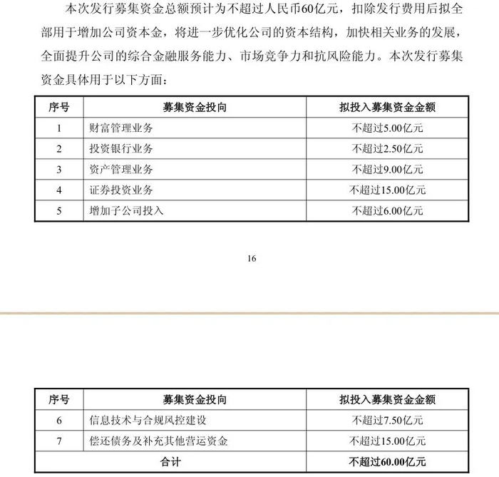 这一次定增融资60亿元,有15亿元用于证券投资业务,除此之外,5亿元用于财务管理业务,2.5亿元用于投资银行业务,9亿元用于资产管理业务,6亿元增加子公司投入,7.50亿元用于信息技术与合规风控建设,15亿元用于偿还债务及补充其他营运资金,因此这一次的定增,能显著提升西南证券的综合实力。