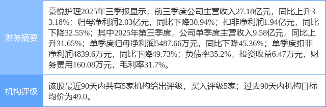 今日豪悦护理(605009)涨6.41%,收盘报34.85元。