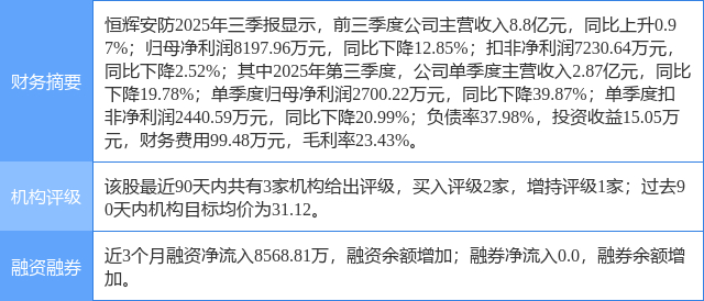 今日恒辉安防(300952)涨14.58%,收盘报34.02元。