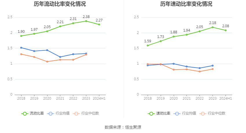 2024年上半年,公司流动比率为2.27,速动比率为2.08。