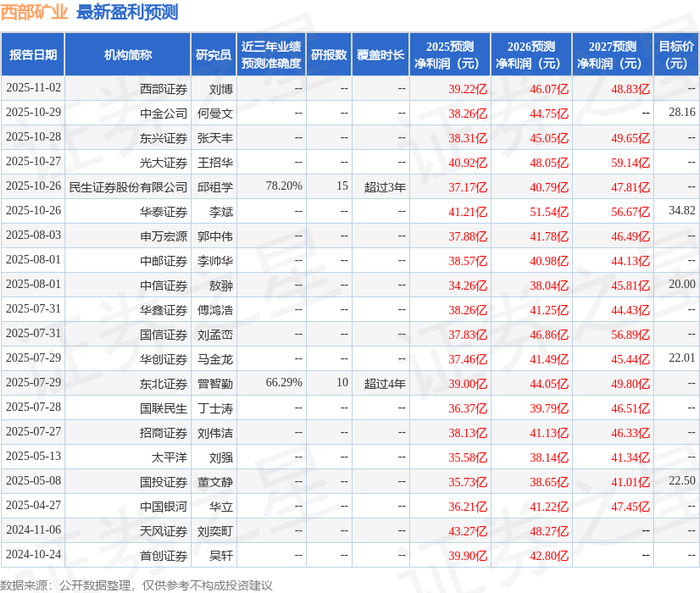 证券之星消息,2025年11月20日西部矿业(601168)发布公告称公司于2025年11月19日组织现场参观活动,中信建投证券参与。