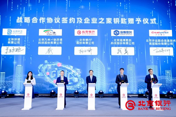 在参会嘉宾的共同见证下,北京银行发布“GBIC2组合金融方案”“英才金融服务方案”和“赞”信用卡品牌,与北京股权交易中心有限公司、中国技术交易所有限公司等14家企业现场签署战略合作协议,并向签约企业赠予北京银行“企业之家”钥匙。