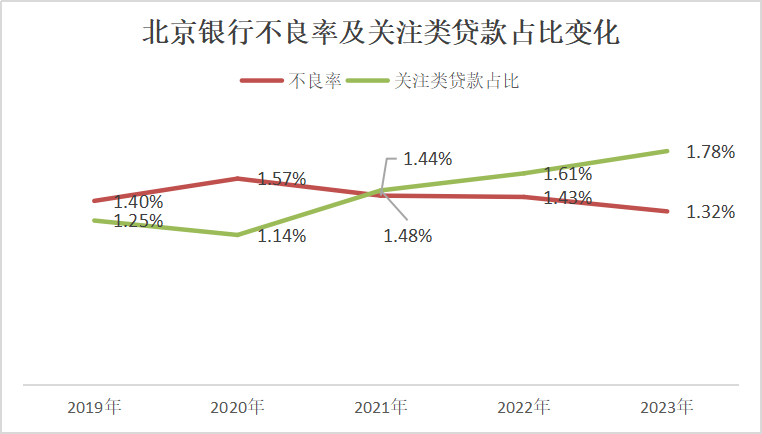 综上,2021年~2023年,北京银行虽然不良率持续优化,但是关注类贷款占比持续升高,而关注类贷款本身就是不良贷款的“预备军”,隐雷仍在。