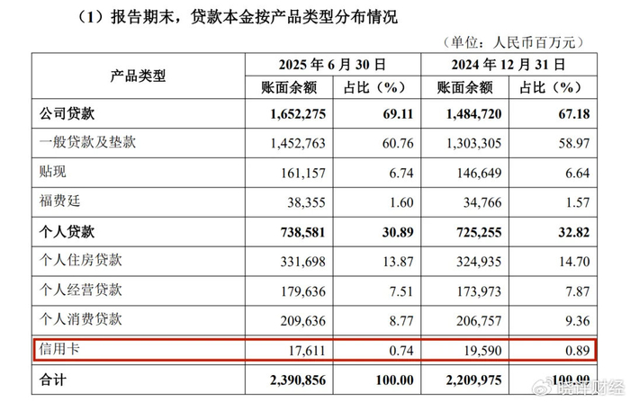 半年报显示,2025年6月末,北京银行的零售贷款中,个人住房贷款、个人经营贷款、个人消费贷款规模分别为3316.98亿元、1796.36亿元、2096.36亿元,较上年末增长67.63亿元、56.63亿元、28.79亿元。而更能体现用户活跃度和黏性的信用卡规模176.11亿元,较上年末减少19.79亿元。