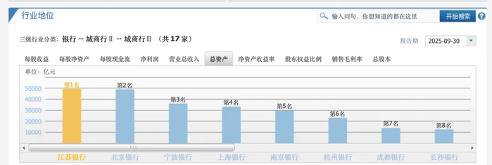 今年6月末,江苏银行资产总额4.79万亿元,超过北京银行的4.75万亿元,正式在资产规模、盈利能力上实现全面赶超,新晋成为城商行一哥。9月末,江苏银行、北京银行的资产总额分别为4.93万亿元、4.89万亿元。