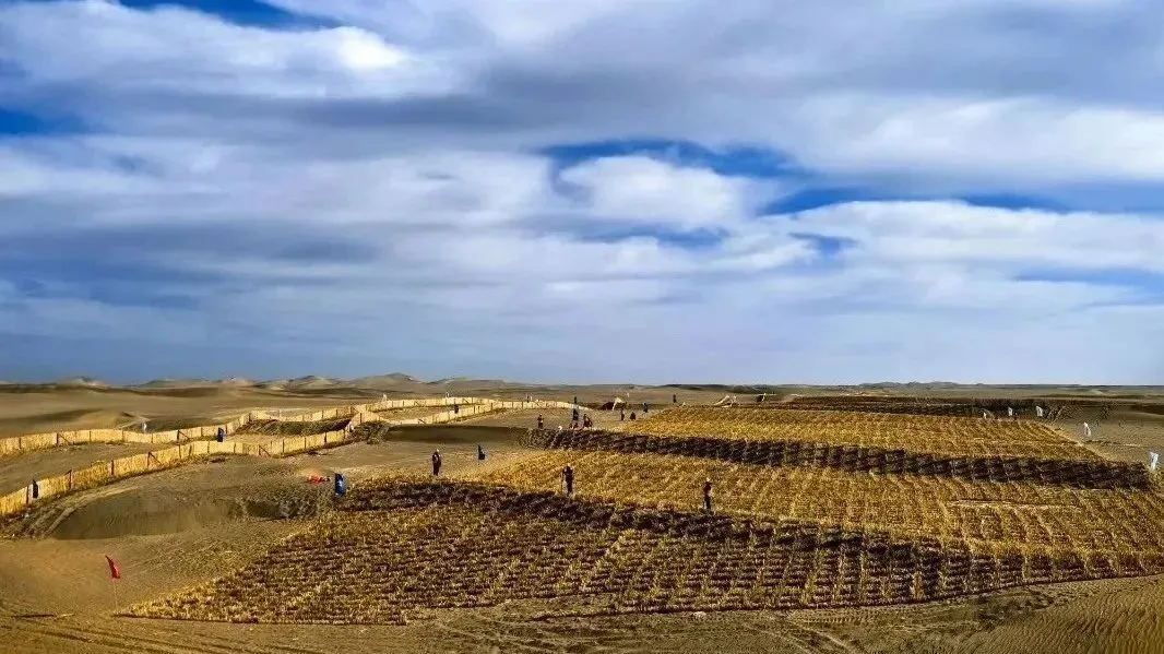 3046公里,是环绕塔克拉玛干沙漠一圈的长度。过去40多年,依托“三北”防护林体系工程建设,塔克拉玛干沙漠周边已形成长达2761公里的绿色阻沙防护带。截至2023年底,还剩285公里的空白区。经过中国铁建建设者艰苦卓绝的奋战,2024年11月28日,空白区锁边任务圆满完成。塔克拉玛干沙漠边缘,构筑起一道完整的绿色屏障。