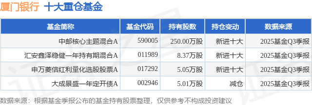 重仓厦门银行的公募基金请见下表: