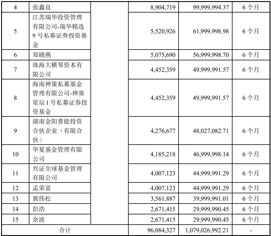 普利特7月25日公告,本次发行的募集资金总额为10.79亿元,发行价格为11.23元/股,发行股数9608.43万股。其中,诺德基金获配2.2亿元,UBS AG获配1.51亿元,国泰君安获配1.04亿元。