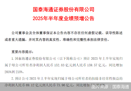 国泰海通:预计上半年归母净利润同比增加205%—218%