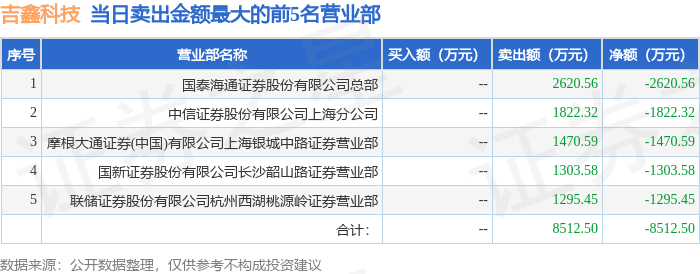 证券之星消息,沪深交易所2025年9月29日公布的交易公开信息显示,吉鑫科技(601218)因有价格涨跌幅限制的日收盘价格涨幅偏离值达到7%的前五只证券登上龙虎榜。此次是近5个交易日内第3次上榜。