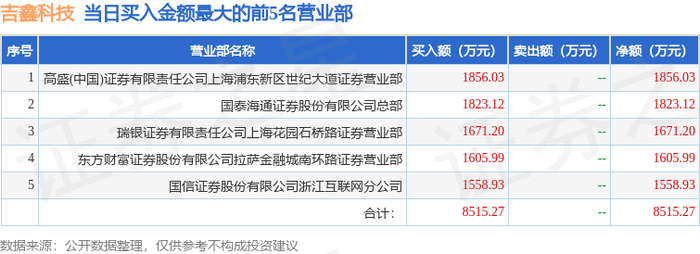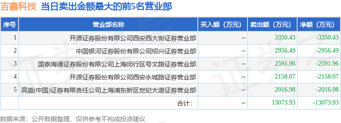 9月30日吉鑫科技(601218)龙虎榜数据:游资流沙河上榜