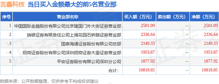 10月13日吉鑫科技(601218)龙虎榜数据:游资章盟主上榜