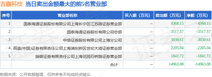 证券之星消息,沪深交易所2025年10月13日公布的交易公开信息显示,吉鑫科技(601218)因有价格涨跌幅限制的日换手率达到20%的前五只证券登上龙虎榜。此次是近5个交易日内第5次上榜。