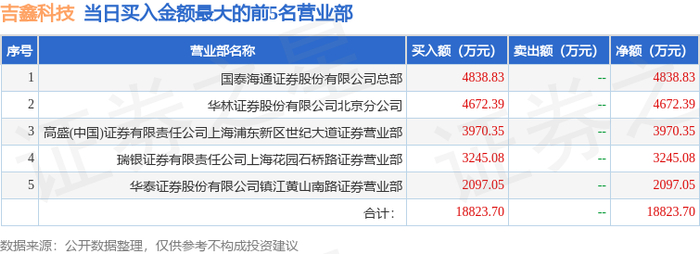 证券之星消息,沪深交易所2025年10月14日公布的交易公开信息显示,吉鑫科技(601218)因有价格涨跌幅限制的日换手率达到20%的前五只证券登上龙虎榜。此次是近5个交易日内第5次上榜。