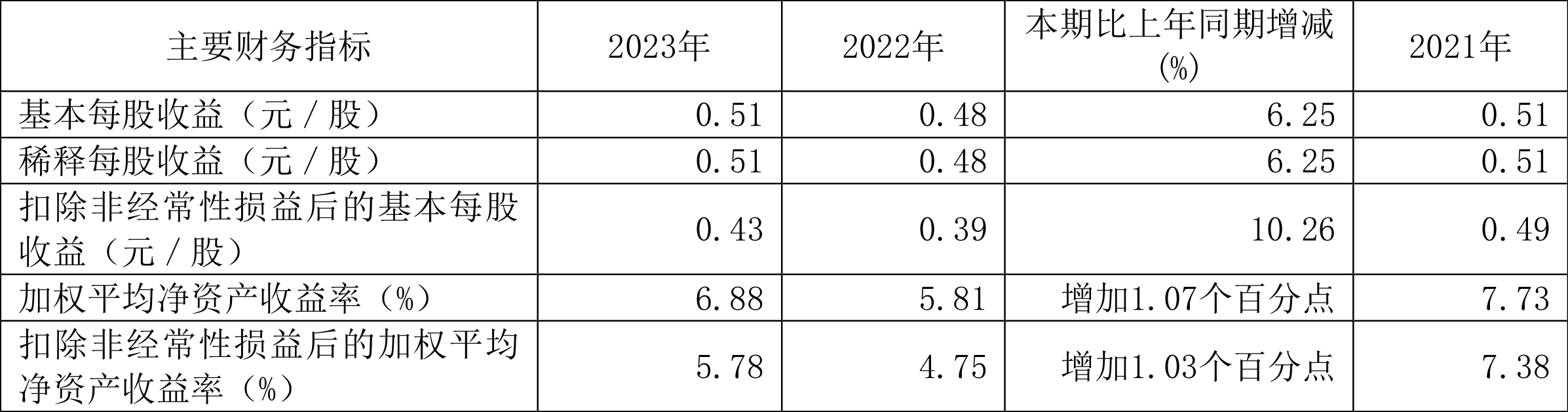 数据显示,2023年公司加权平均净资产收益率为6.88%,较上年同期增长1.07个百分点;公司2023年投入资本回报率为5.80%,较上年同期增长0.56个百分点。
