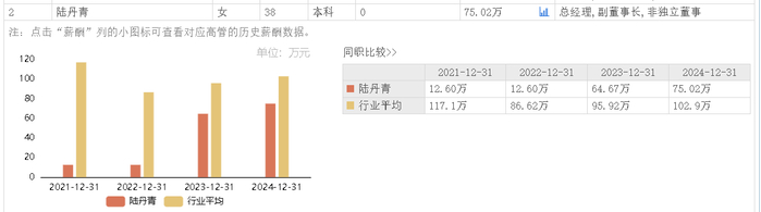 据东方财富网数据,林洋能源总经理陆丹青2024年领薪75.02万元,相较上年薪酬64.67万元涨薪16%。