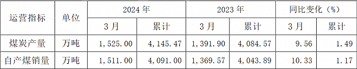 陕西煤业:第一季度自产煤销量4091万吨,同比上涨1.17%