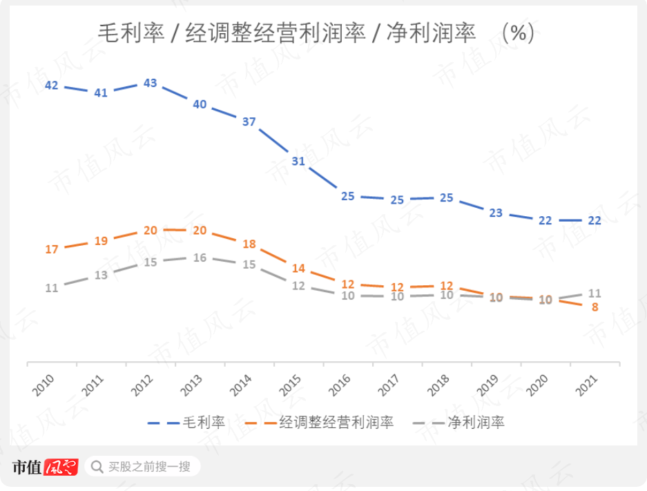 而受到管理费用为主的其他费用的侵蚀(不低于营业收入的9%),经调整经营利润率和净利润率自上市以来没有超过12%。