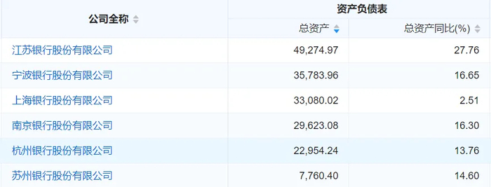 总资产方面,截至2025年一季度末,江苏银行以4.46万亿元位居第一,宁波银行为3.40万亿元,首次超过上海银行的3.27万亿元。