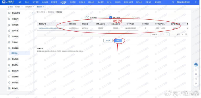 核对票据信息无误后,点击“提交”即可。这样只要背书后下家没有签收的新一代票据,就又可以重新回到自己的账户了。