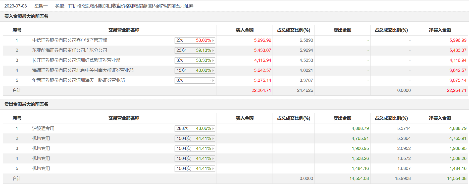 具体来看,机构合计净卖出9665.29万元。此外,中信证券客户资产管理部、东亚前海证券广东分公司分别买入5996.99万元、5433.07万元;沪股通专用分别卖出4888.79万元。