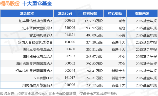 重仓桐昆股份的前十大公募基金请见下表: