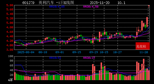 截止收盘,英利汽车报收5.78元/股,涨幅10.1%,成交量39万手,成交额2.29亿元,换手率2.5%。今日2板。