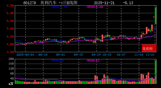 截止收盘,英利汽车报收5.31元/股,涨幅-8.13%,成交量187万手,成交额11.11亿元,换手率11.81%。今日未涨停。