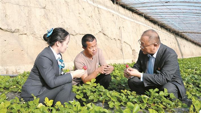 农行伊犁兵团分行六十二团支行客户经理赴当地草莓种植大棚,实地了解农户生产经营情况(资料图片)。 柳博超 摄●桂明福