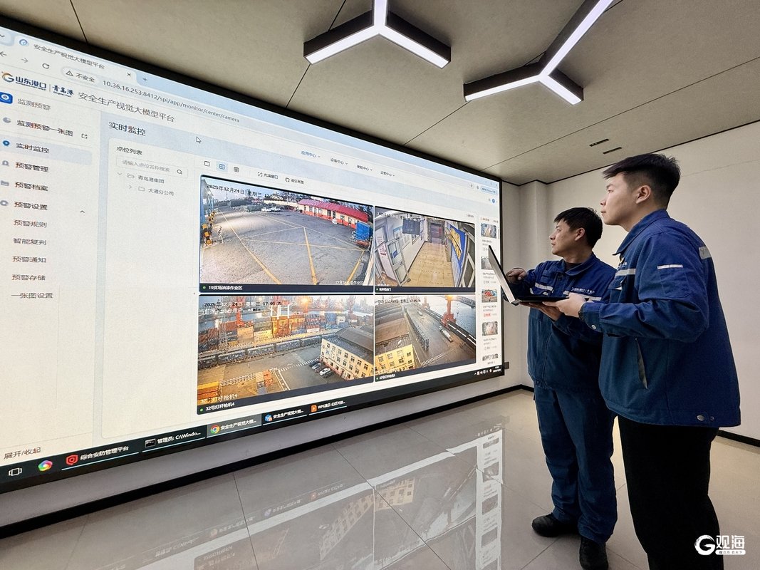 随着港口作业场景日益复杂,传统“现场巡检+视频监控”模式逐渐暴露出覆盖有限、查纠效率不足等问题。作为中试基地的创新成果之一,青岛港以大港港区为试点,率先落地安全生产视觉大模型,形成了一套高效运转的智能化安全查纠系统,为港口安全生产注入科技动能。