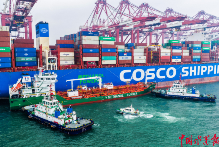 青岛港完成船对船绿色甲醇燃料加注