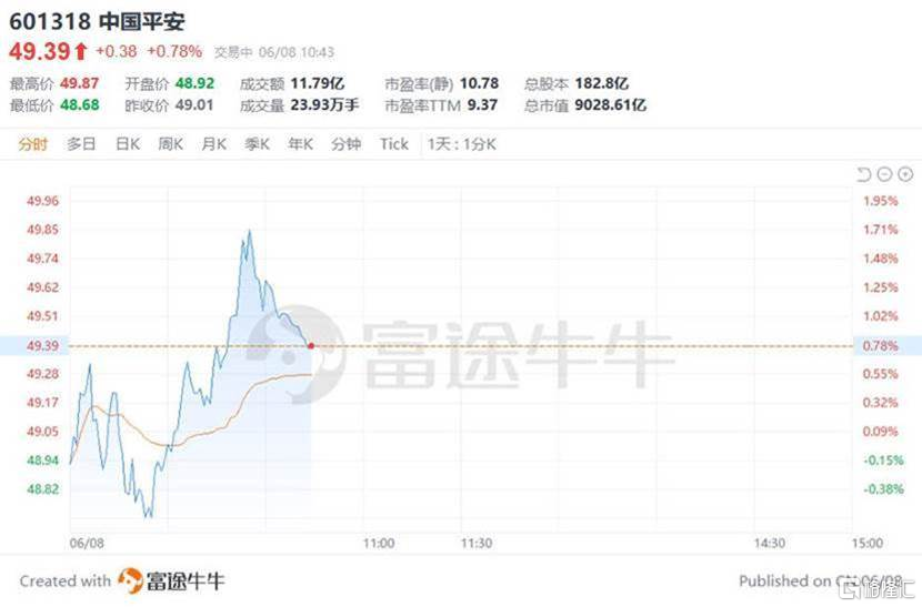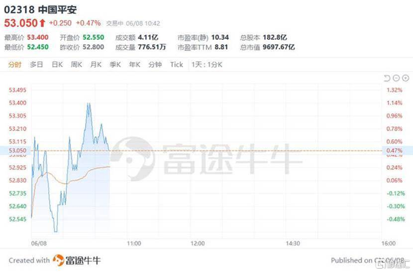 6月8日中国平安A股、港股行情走势,图片来源:富途行情