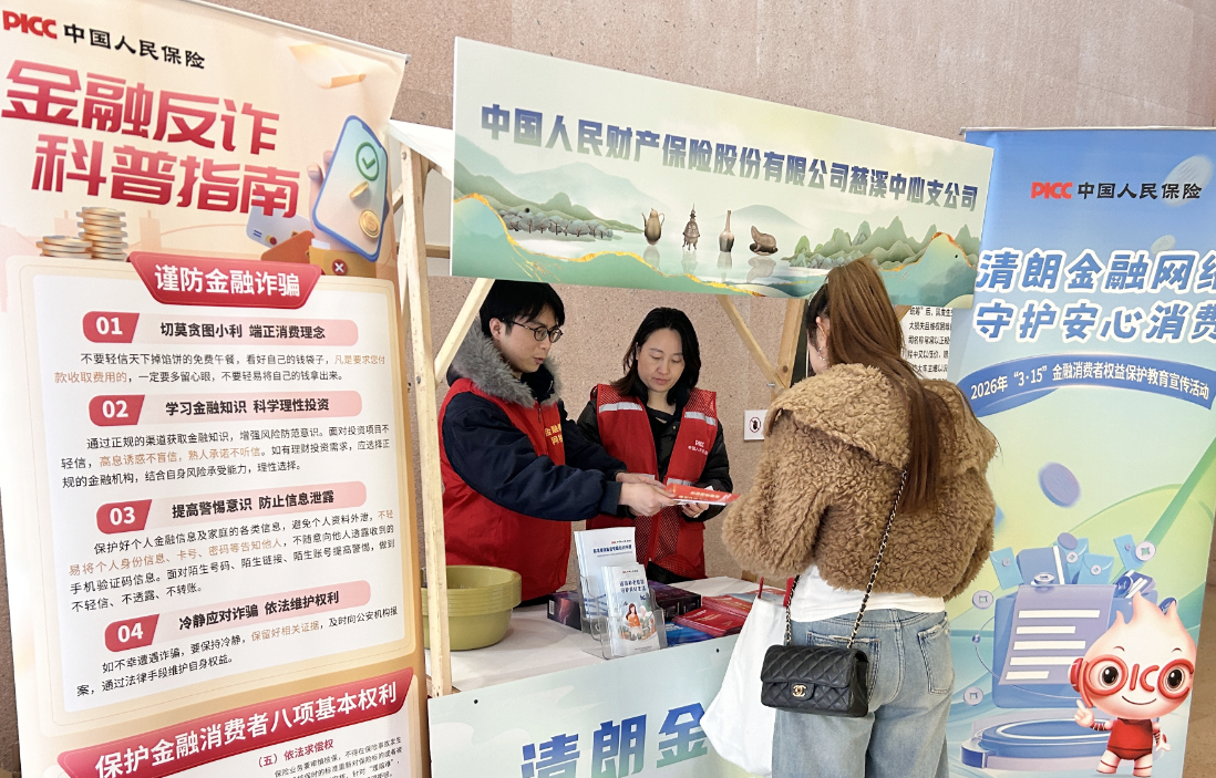在“3·15”国际消费者权益日来临之际,围绕“清朗金融网络,守护安心消费”活动主题,慈溪金融监管支局于3月5日在慈溪青瓷文化传承园组织开展金融消费者权益保护教育宣传活动。人保财险慈溪中心支公司作为本次活动中唯一保险机构,与多家银行机构共同参与现场宣传,以实际行动践行金融为民理念。