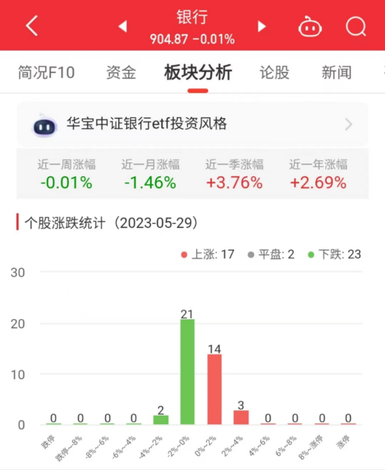 数据显示,截至今日,银行板块近一周涨幅-0.01%,近一月涨幅-1.46%,近一季涨幅3.76%。