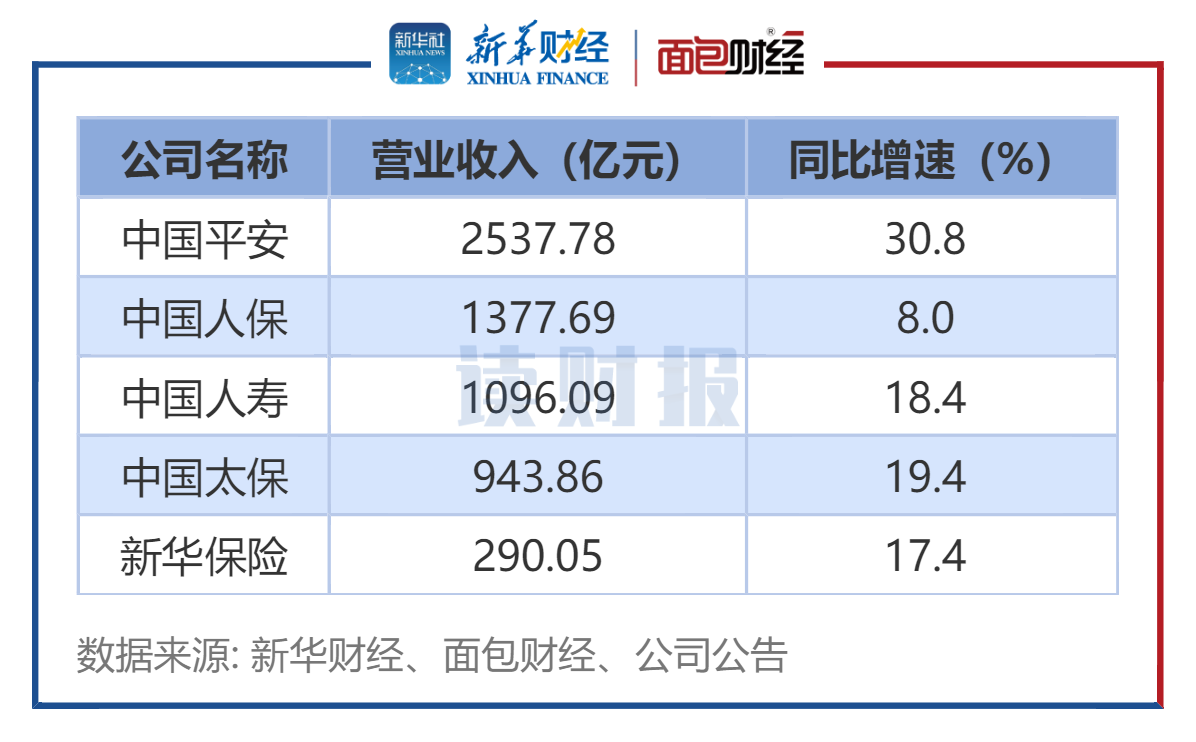 中国人保和新华保险归母净利润增速超一倍