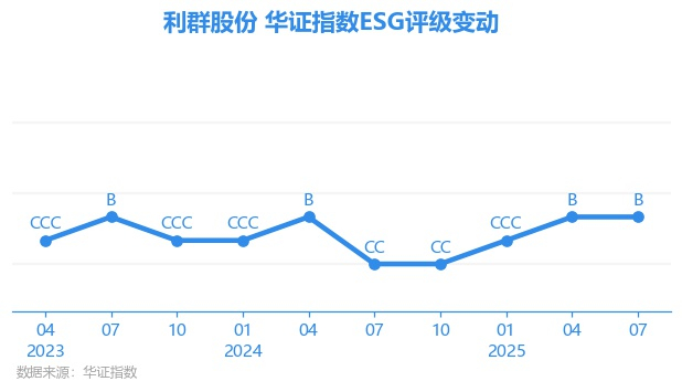 日前,华证指数公布了新一期(2025年7月31日)的ESG评级结果,利群股份(601366.SH)获得B评级(华证指数评级为C起至AAA九档,C为最低档,AAA为其最高一级评级/AA为其第二档),上一期(2025年4月30日)ESG评级为B。本期ESG评级在39家多品类零售行业A股上市公司中排名第7(上一期排名第11)。