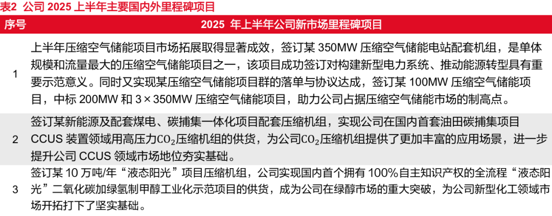 公司签约多个压缩空气储能项目,带动公司业绩增长。公司在湖北应城项目中提供的双线四段八套大型压缩机组全部一次试车成功,顺利并网,体现了公司在压缩空气储能领域的专业实力。根据公司在投资者互动平台信息,2025年公司压缩空气储能项目市场拓展取得显著成效,签订某350MW压缩空气储能电站配套机组,是单体规模和流量最大的压缩空气储能项目之一,该项目成功签订对构建新型电力系统、推动能源转型具有重要示范意义。同时,公司实现某压缩空气储能项目群的落单与协议达成,签订某100MW压缩空气储能项目,中标200MW和3×350MW压缩空气储能项目,给公司未来业绩注入动力。