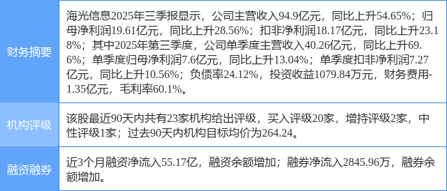 今日海光信息(688041)涨5.45%,收盘报249.01元。