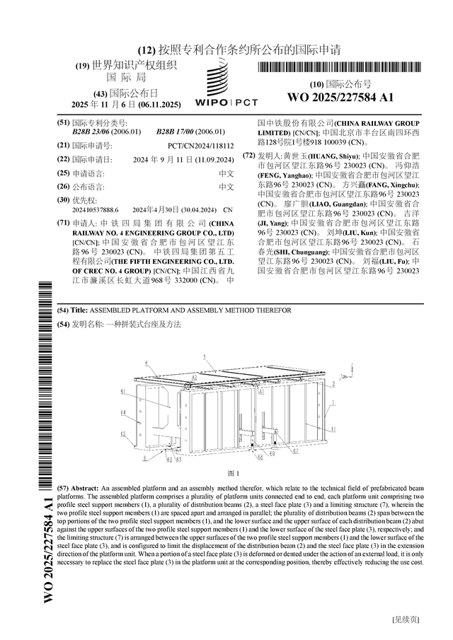 中国中铁公布国际专利申请:“一种拼装式台座及方法”