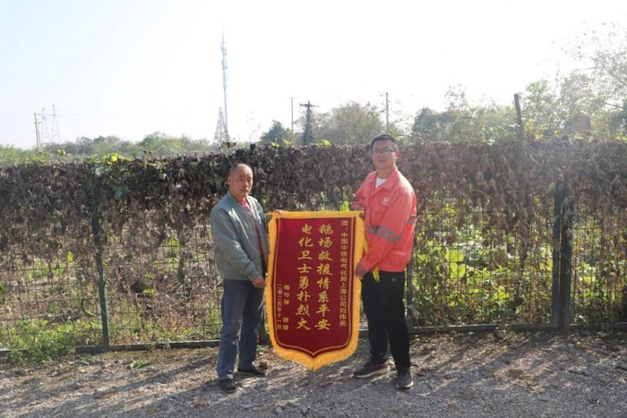 2025年11月13日,芜湖市褚家村的梅先生将一面印有“电化卫士勇扑烈火 鹅场救援情系平安”的锦旗交到了中国中铁电气化局宁芜项目部接触网作业队队长刘伟亮的手中。梅先生激动地说道:“仓库里存着3000斤饲料,要不是你们及时扑救,我的损失就大了!”面对这份沉甸甸的认可,刘伟亮却谦逊回应:“这是每个中铁电化局人该做的。”这温暖的一幕,源于几天前一场惊心动魄的救火行动。