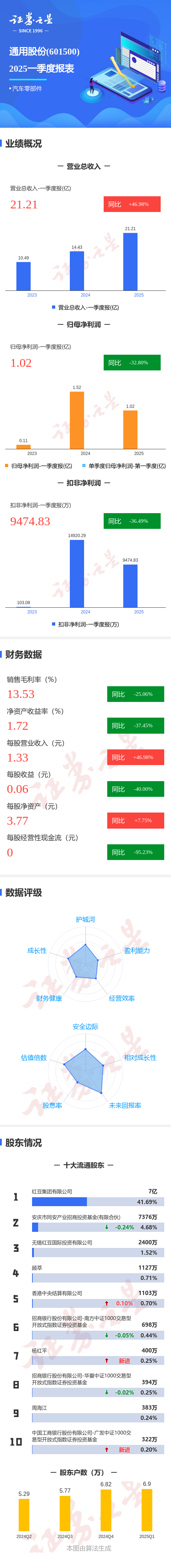 图解通用股份一季报:第一季度单季净利润同比减32.81%