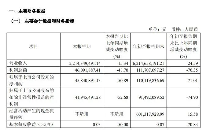 近日,通用股份发布三季报显示,公司前三季度实现营业收入62.15亿元,同比增长24.59%;净利润1.10亿元,同比下降71.01%。