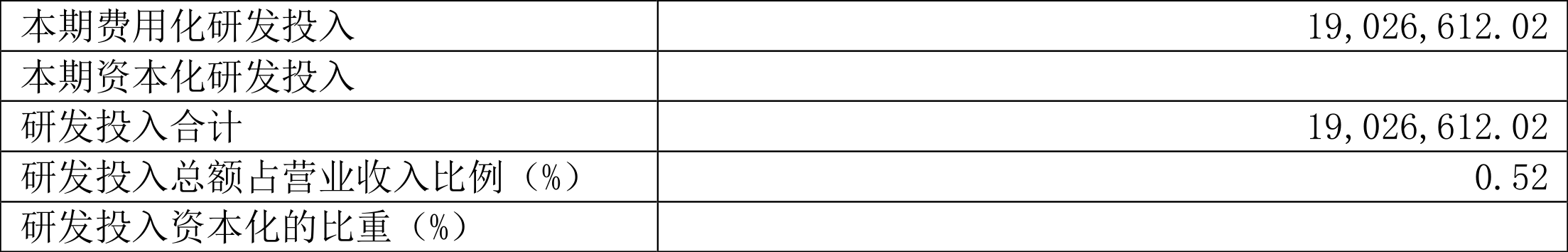 2023年全年,公司研发投入金额为1902.66万元,同比增长46.03%;研发投入占营业收入比例为0.52%,相比上年同期上升0.25个百分点。此外,公司全年研发投入资本化率为0。