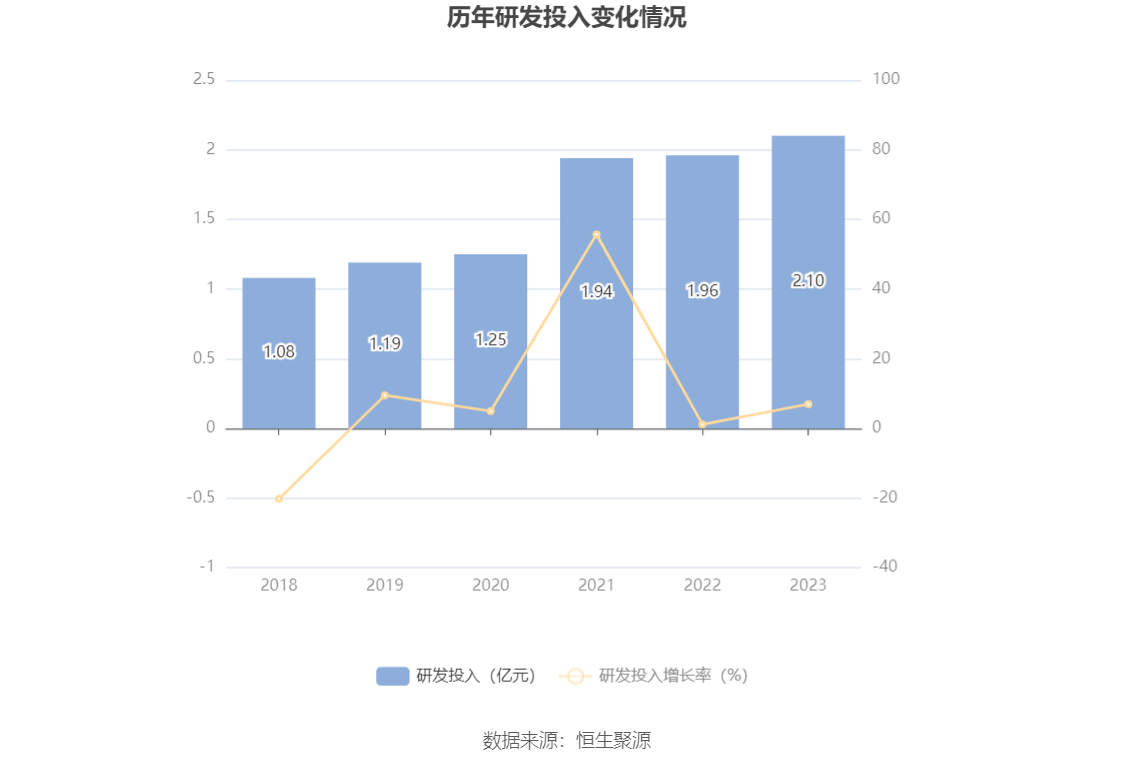 2023年全年,公司研发投入金额为2.10亿元,同比增长6.96%;研发投入占营业收入比例为26.99%,相比上年同期上升1.85个百分点。此外,公司全年研发投入资本化率为0。