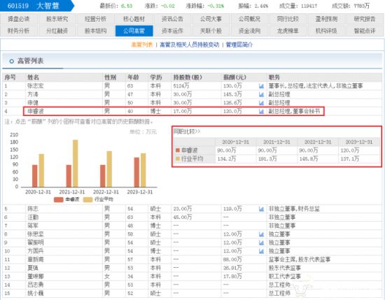 东方财富网显示,2023年申睿波的薪酬为120万,相较于2022年薪酬上涨了30万,在此之前申睿波薪酬连续几年都是90万。不过这一薪酬在大智慧几位副总中是最低的。