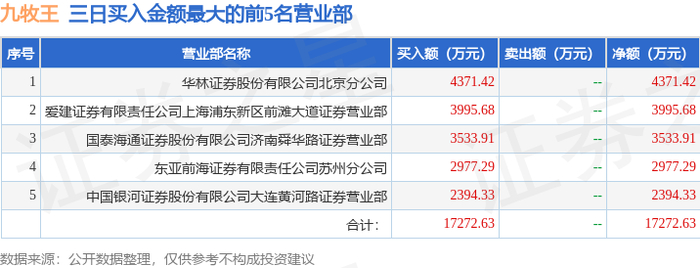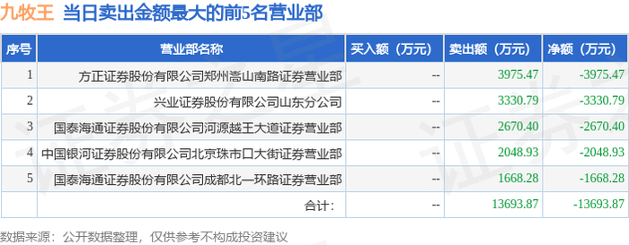 11月19日九牧王(601566)龙虎榜数据:游资陈小群、越王大道上榜