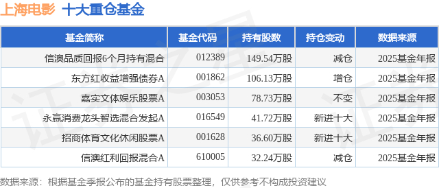 重仓上海电影的公募基金请见下表: