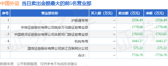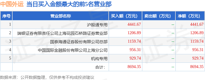 9月29日中国外运(601598)龙虎榜数据:机构净卖出113.53万元,北向资金净买入1885.18万元