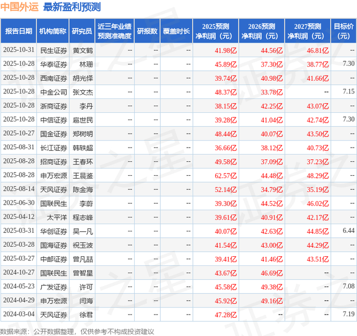 证券之星消息,2025年11月5日中国外运(601598)发布公告称公司于2025年10月28日接受机构调研,华泰证券参与。