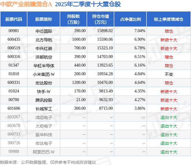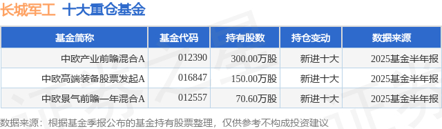 根据2025基金半年报公募基金重仓股数据,重仓该股的公募基金共3家,其中持有数量最多的公募基金为中欧基金的中欧产业前瞻混合A。中欧产业前瞻混合A目前规模为14.66亿元,最新净值0.7643(10月13日),较上一交易日上涨2.33%,近一年上涨28.58%。该公募基金现任基金经理为李帅。李帅在任的基金产品包括:中欧瑾和灵活配置混合A,管理时间为2021年5月10日至今,期间收益率为43.66%;中欧景气前瞻一年混合A,管理时间为2021年8月13日至今,期间收益率为-14.9%;中欧高端装备股票发起A,管理时间为2022年11月14日至今,期间收益率为10.64%。